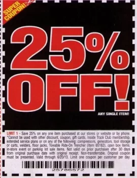 Harbor Freight 25 Percent Off Coupon 2022 - HotDeals.com Save 25% off any 1 Item you order. Grab your savings with this Harbor Freight 25 Percent Off Coupon code. 10+ Harbor Freight coupons and discounts for July 2022. Current Harbor Freight sales and promotions end soon…. Expires: Jul 21, 2022 3 used Last used 8 days ago.